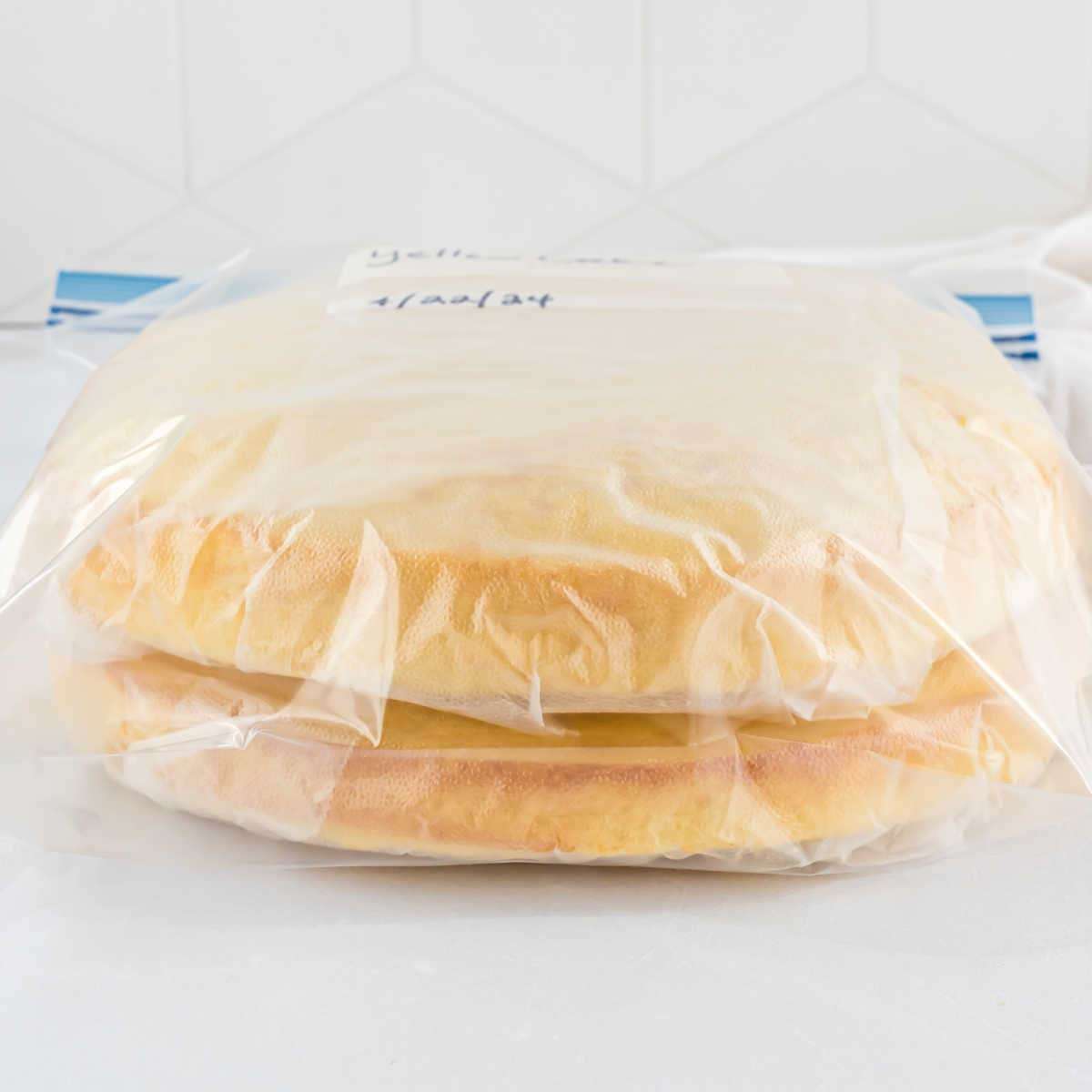 - To freeze cake layers, wrap each layer of cake individually in Press & Seal plastic wrap. Slice layers of cake into an airtight Ziploc freezer bag. You can also use foil to wrap your plastic wrap layers. Be sure to label your freezer bags.