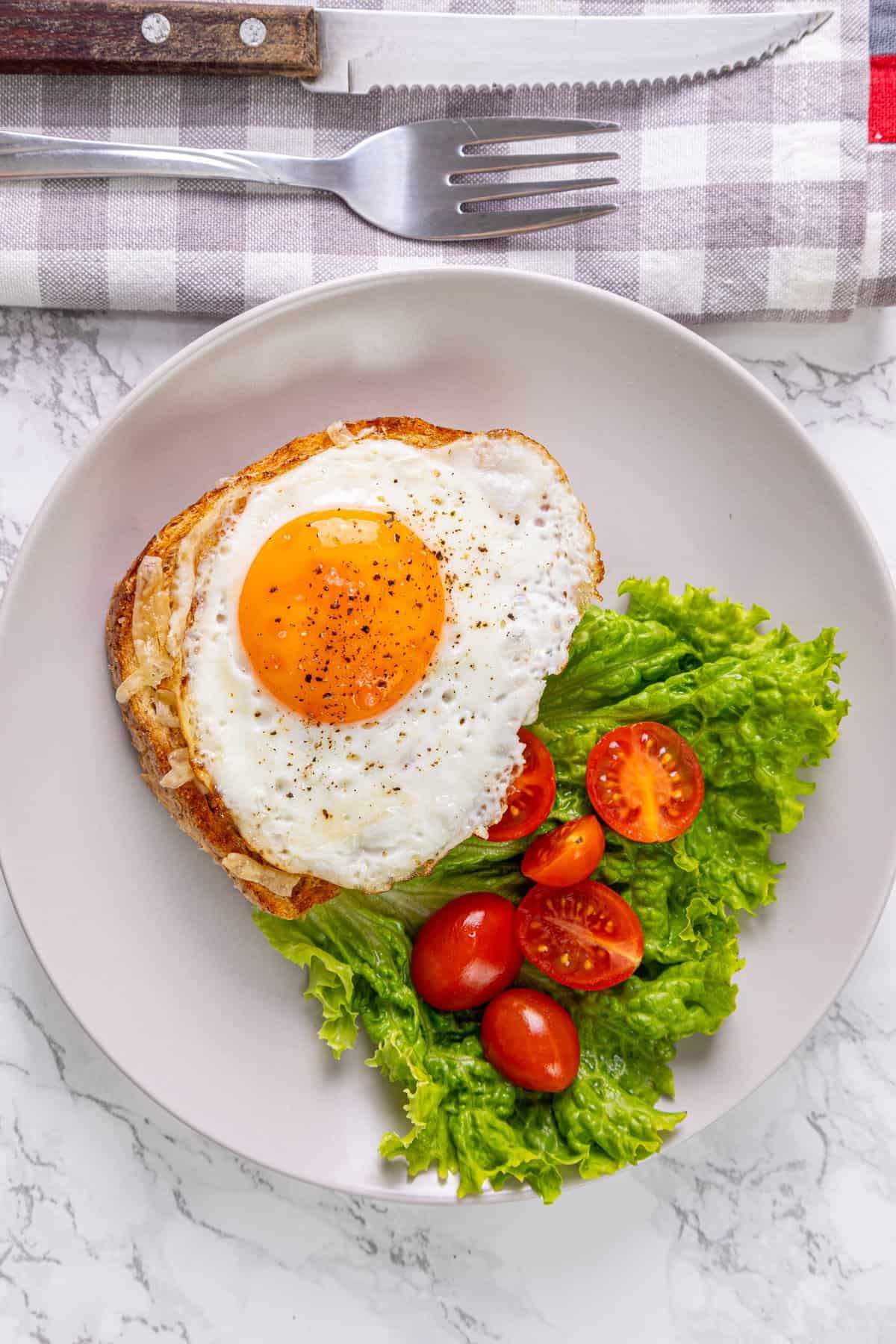 - Carefully transfer the cooked egg to a plate, season with salt and pepper to taste, and serve immediately.