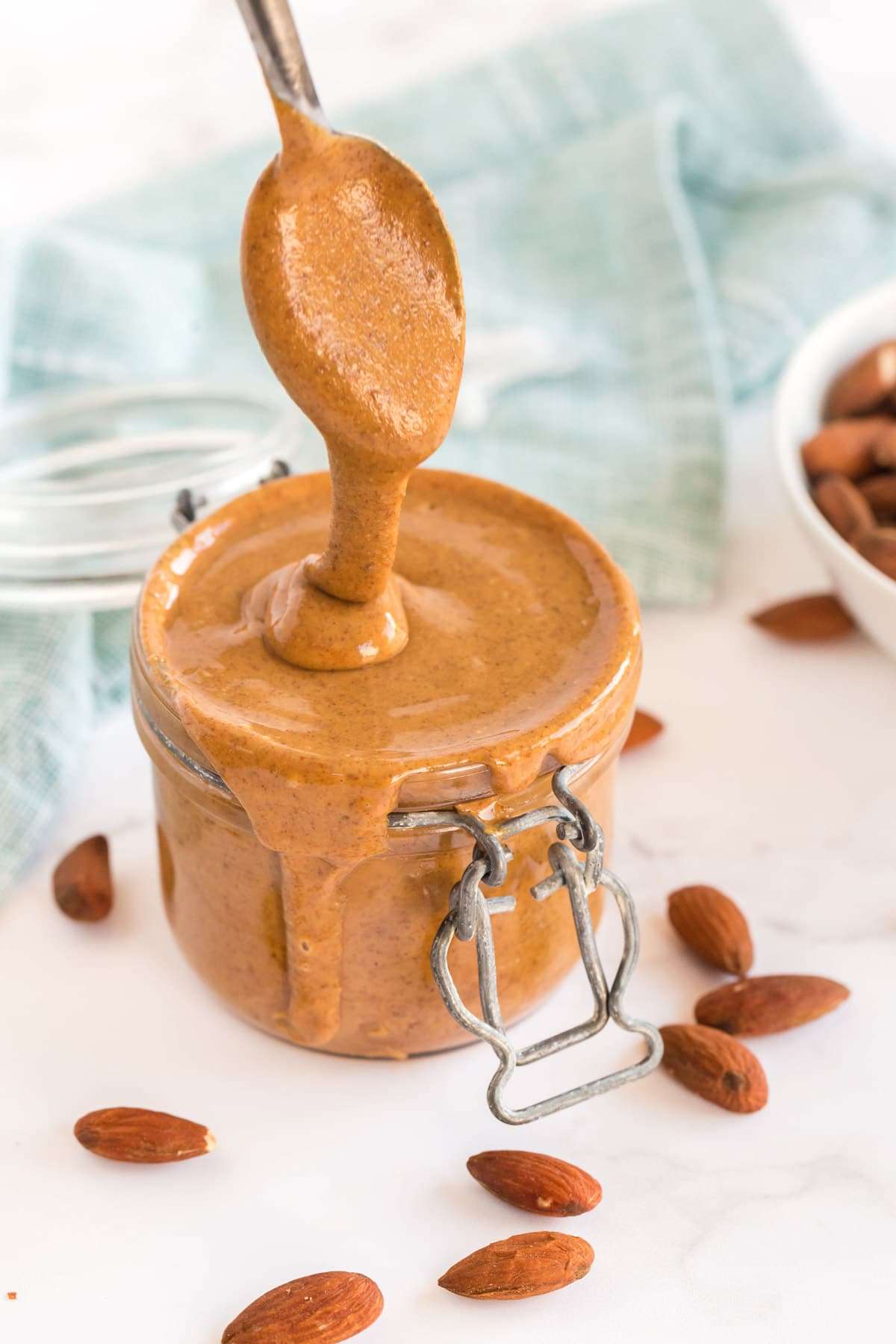 - Recipe yield is about 1 and 3/4 cups of almond butter