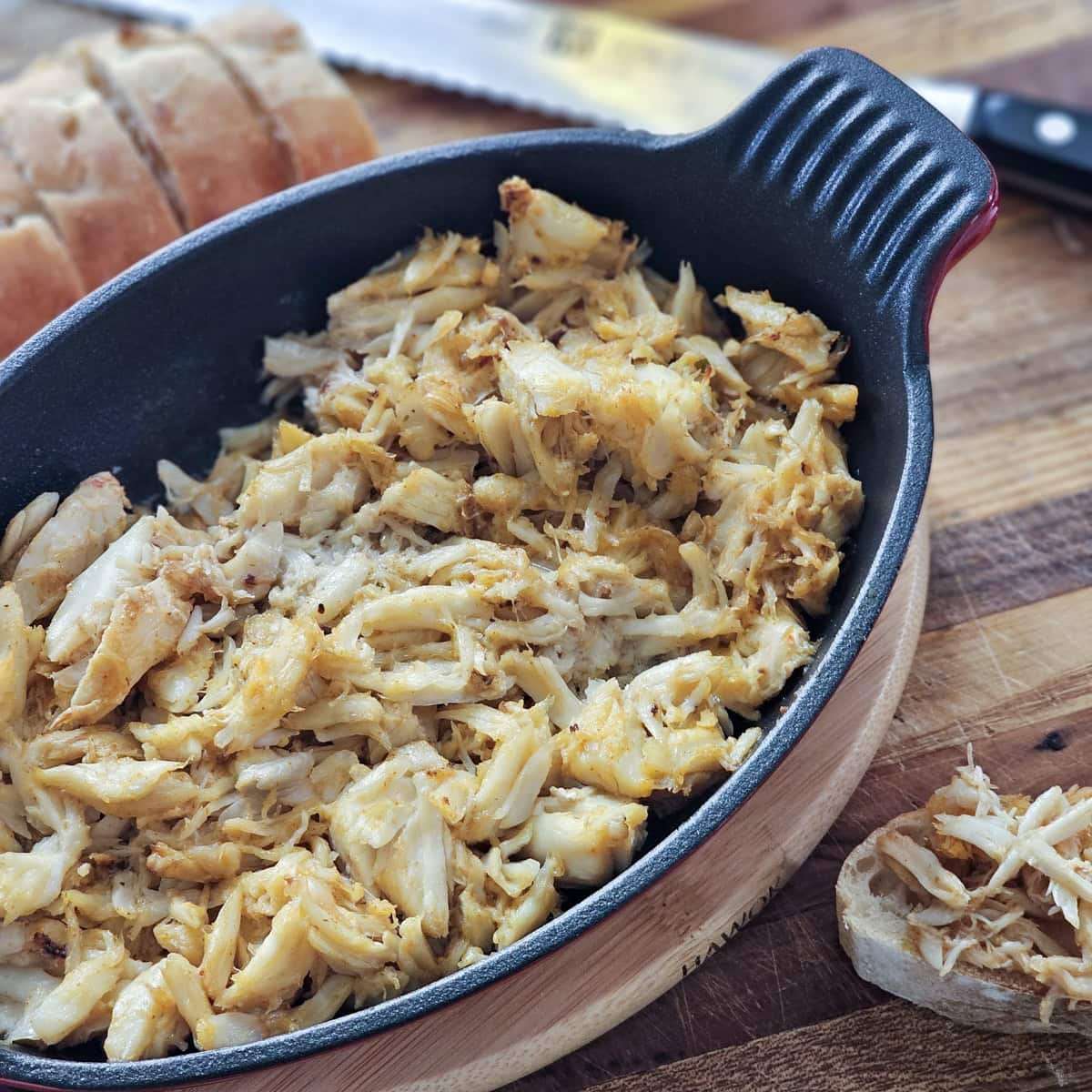 This simple Northeastern crab dish is the perfect summer appetizer. Lump crab meat is gently cooked in butter, vinegar and seasoning for a fresh and simple seafood dish.