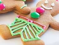 - To pipe the icing, put into individual small plastic bags. Cut a small hole in a corner of each bag. Pipe icing over gingerbread men to decorate. Finish with Smartie