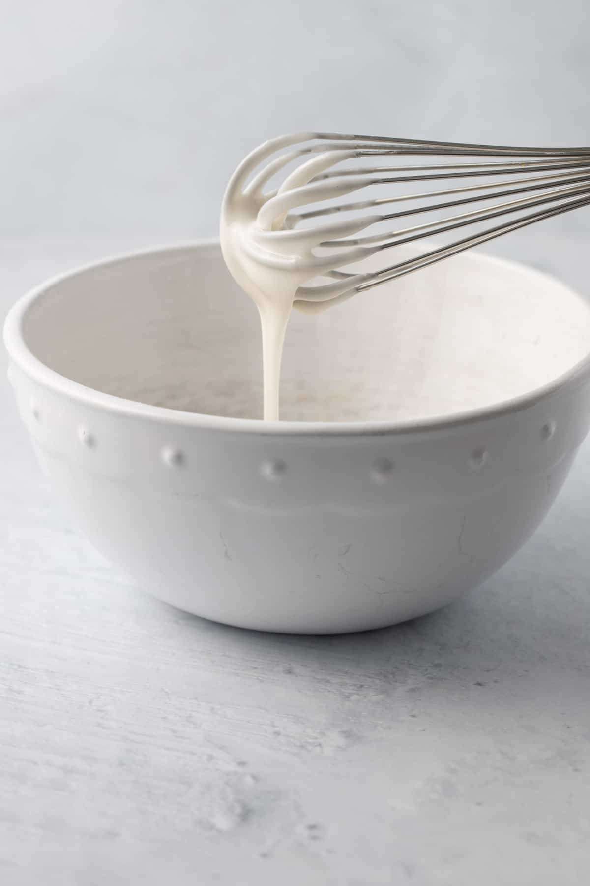 - Sift the powdered sugar into a medium bowl. Add the whole milk and the vanilla and use a whisk to mix until smooth without any lumps.
