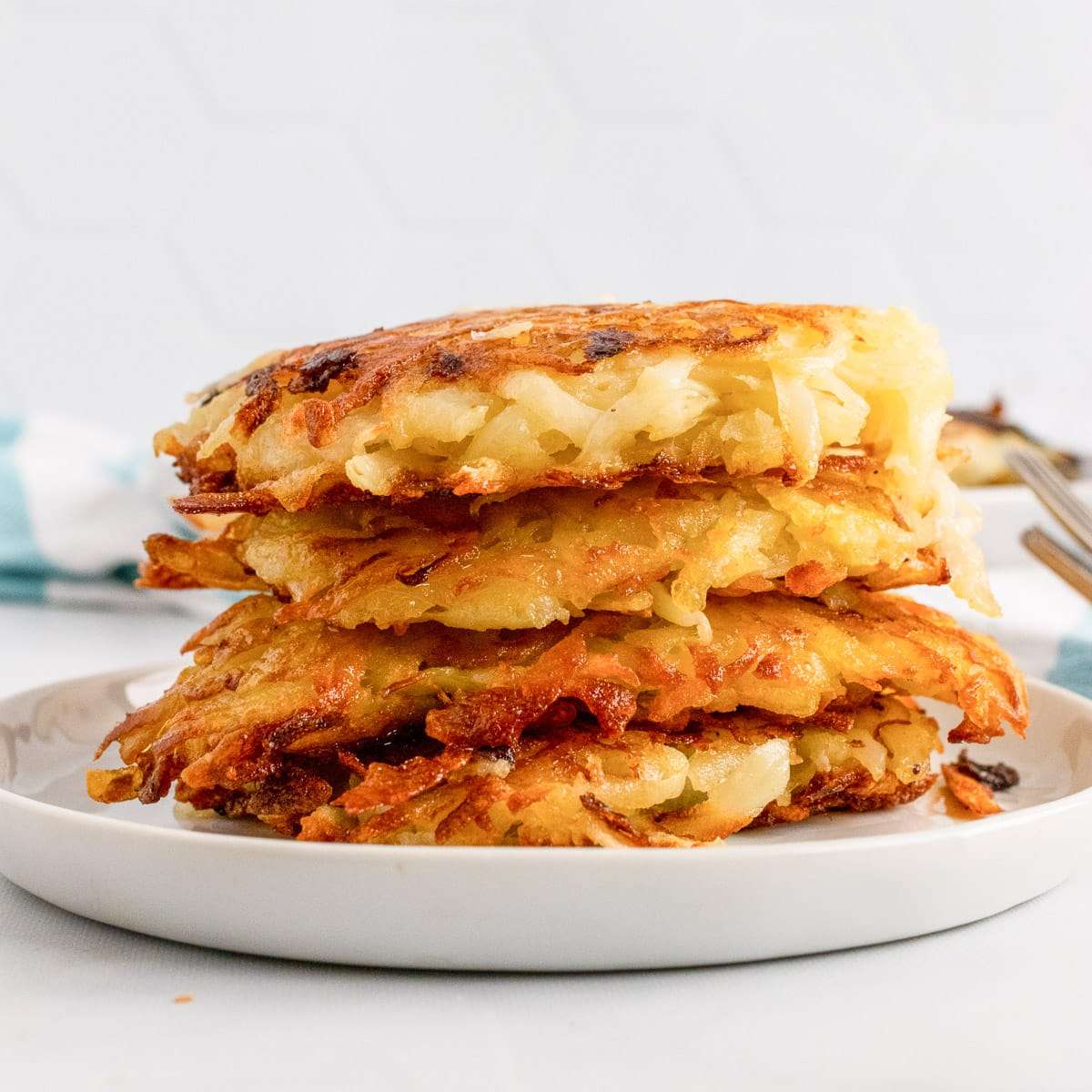 - Do not rinse the potato shreds, the starch will help the pancake stick together.