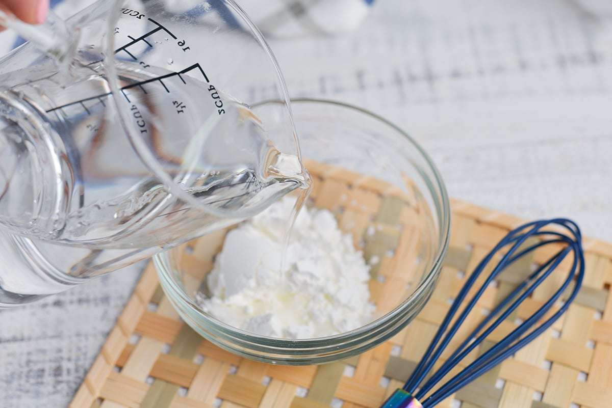 - In a small bowl, whisk together the cornstarch or flour with water.