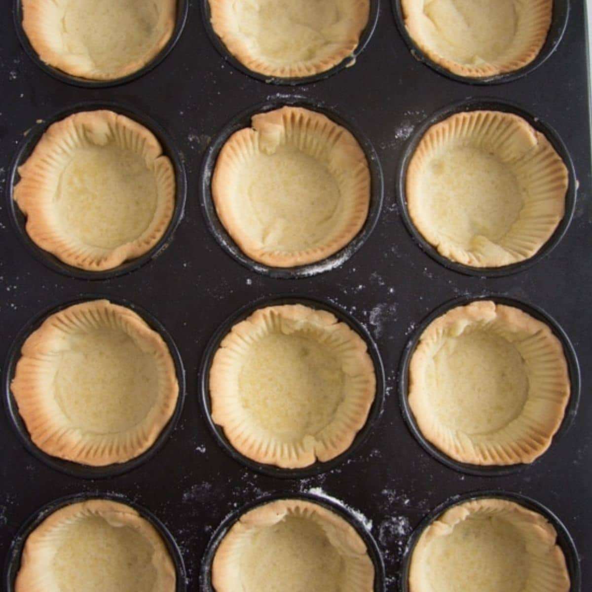 - Roll: Dust the working surface with very little flour. Take one portion of the wrapped pastry out of the fridge and divide it into 6 parts. Form 6 small balls and roll each one into a circle, about 2-3 mm thick and large enough to cover the bottom and the walls of the muffin tin. Repeat with another portion of pastry.