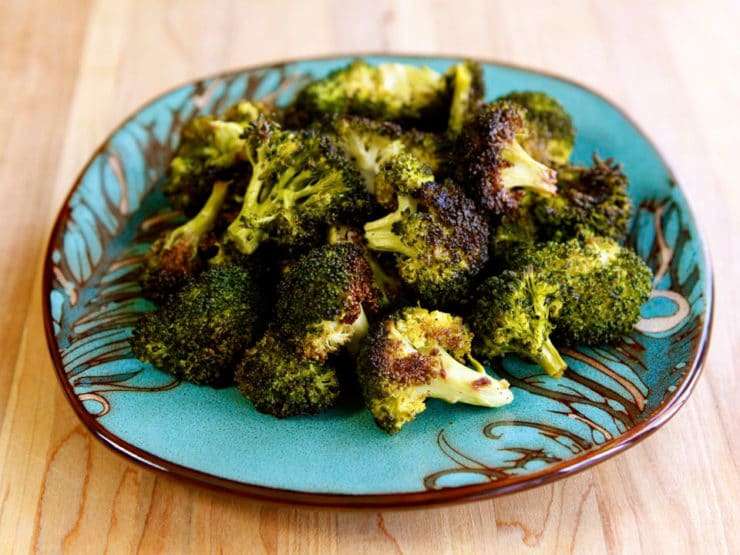 - Roast for about 30 minutes, turning the florets with tongs halfway through cooking, till florets are tender and the crowns are crisp (tips should be browned, not blackened). Watch it carefully towards the end, it can easily go from roasted to burned. Oven temps vary and not every oven will take exactly 30 minutes; you will learn what works for your oven.