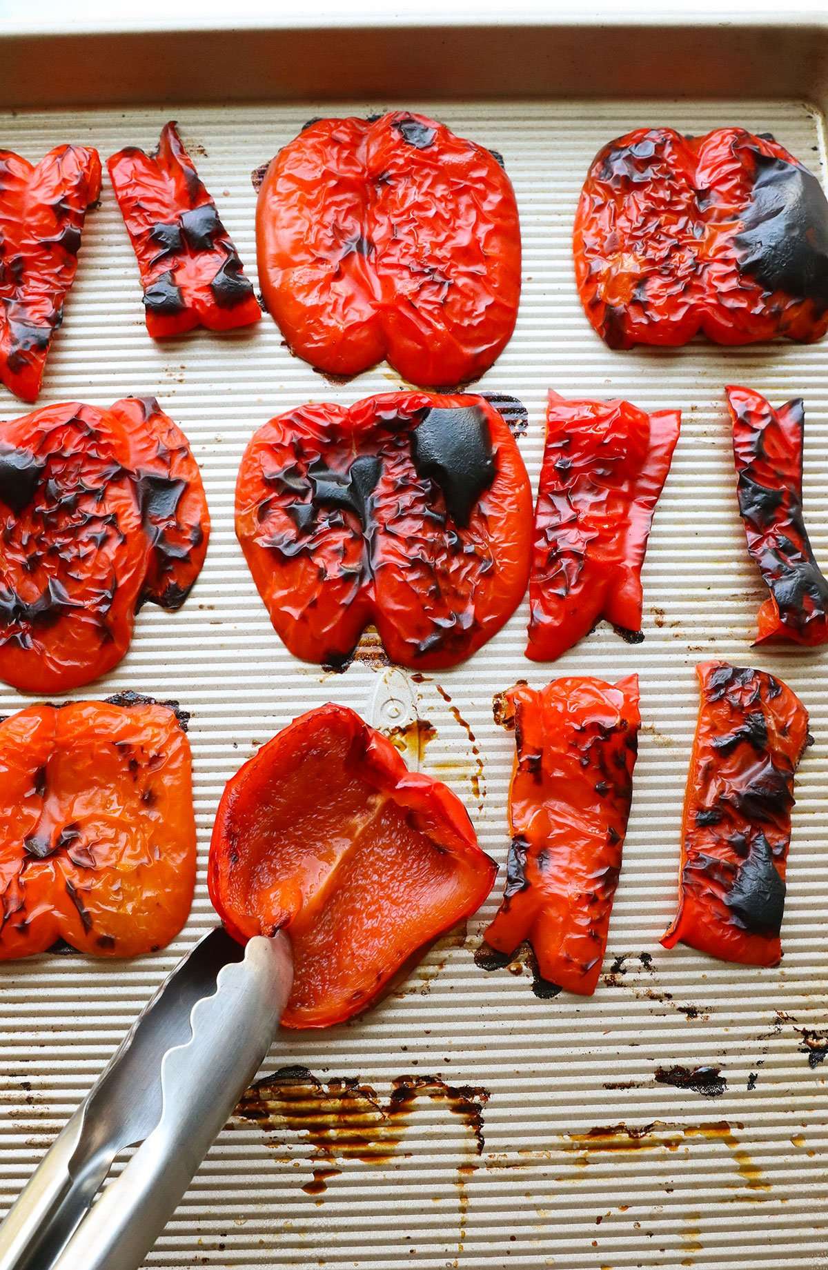 - Note: You can use as many red bell peppers as you like for this recipe, as long as you arrange them in a single layer on a baking sheet. Cook 1 at a time or several!