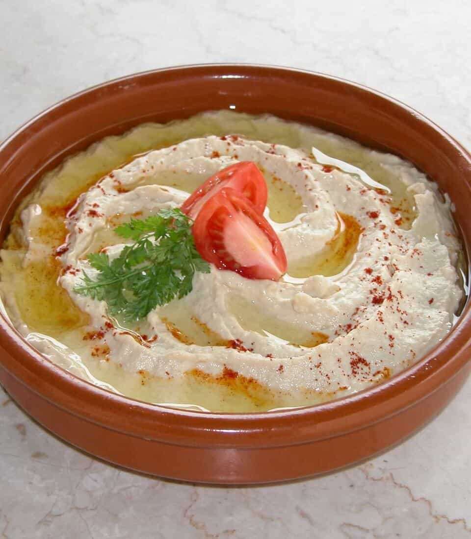 - Place into the serving dish and refrigerate well. Just before serving, make a few grooves with the back of a spoon into the hummus, drizzle with the remaining virgin olive oil and sprinkle with little paprika powder.