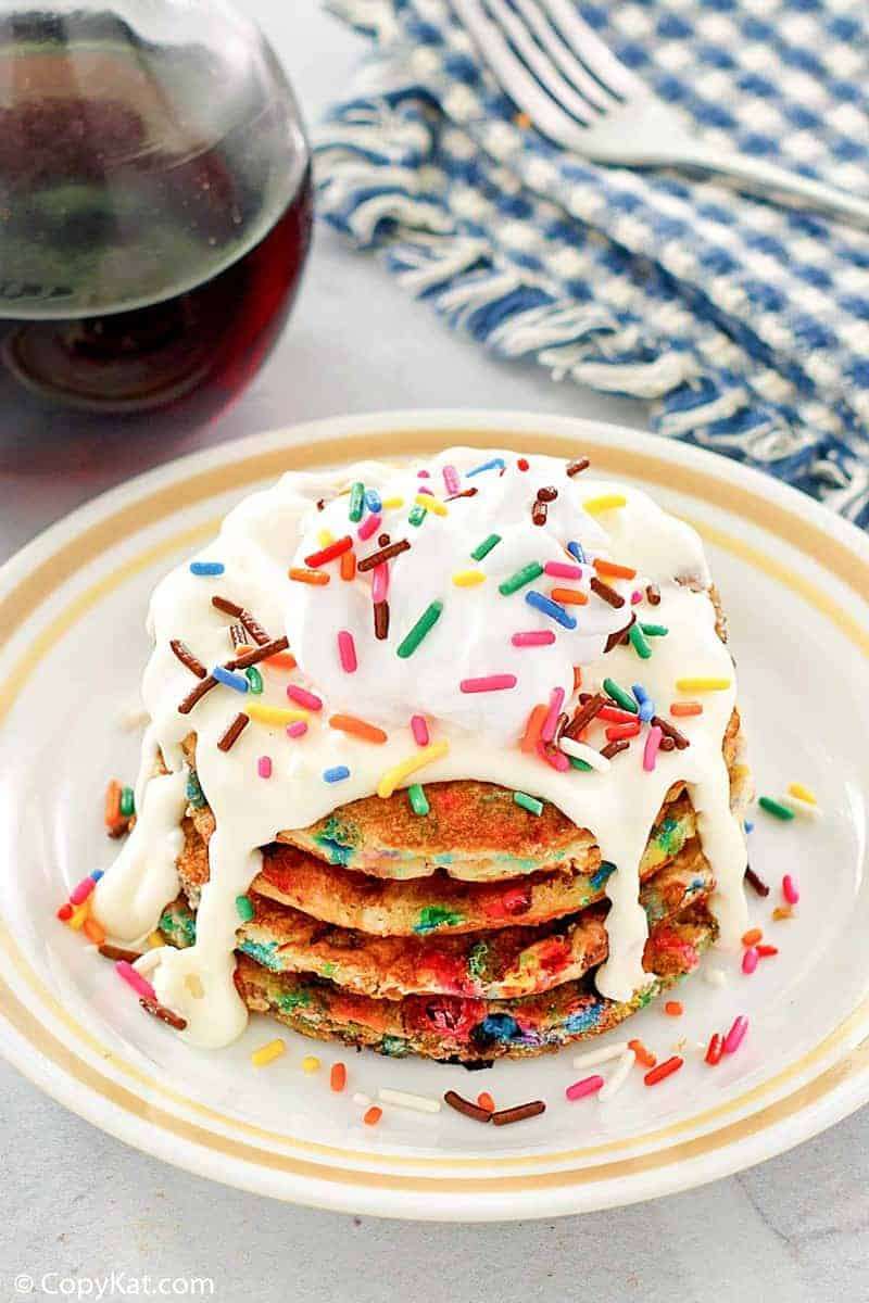 IHOP Cupcake Pancakes are perfect for kids birthday breakfast. Get the easy copycat recipe to make the best funfetti pancakes with icing from scratch.
