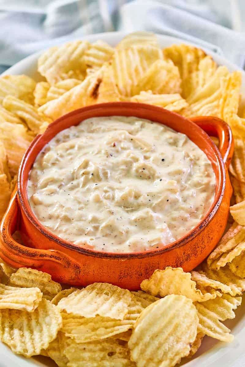 - Store the onion dip in a air-tight container in the refrigerator. But you will want the dip to be room temperature when you serve it.