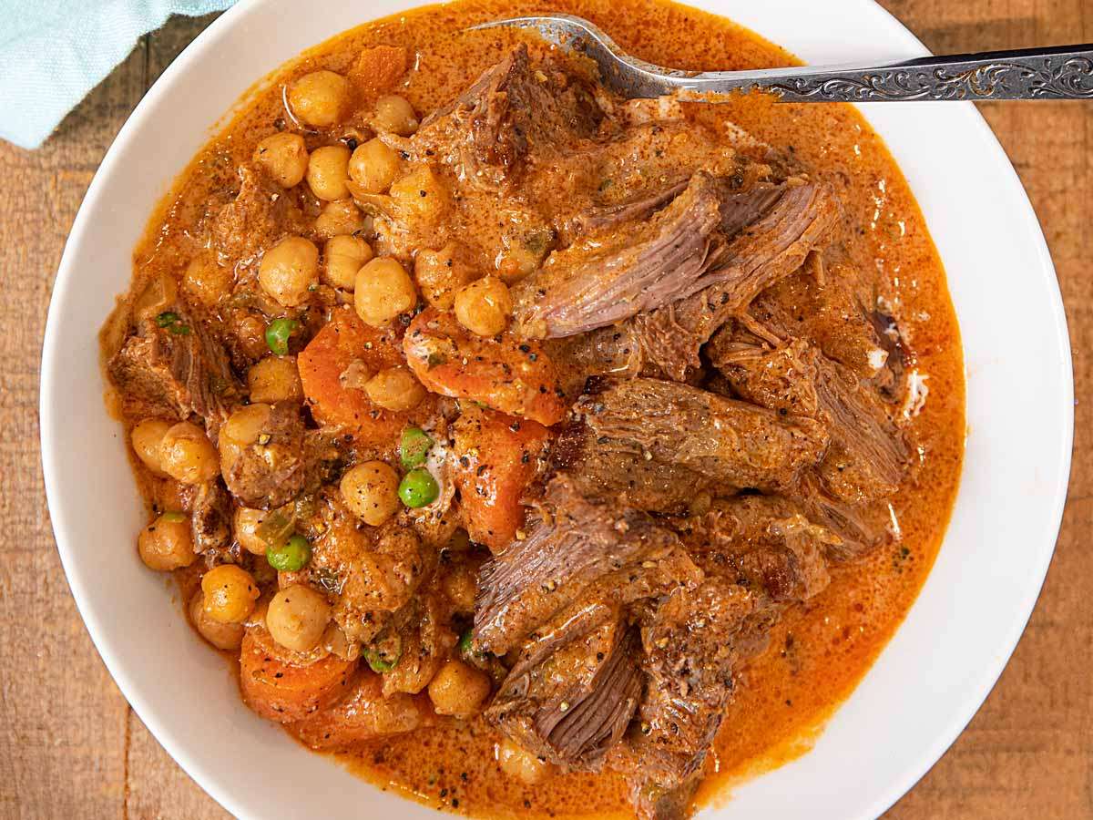 Indian Butter Pot Roast is your new favorite one-pot dinner! Made with beef, veggies, and chickpeas in a creamy, buttery curry tomato sauce.