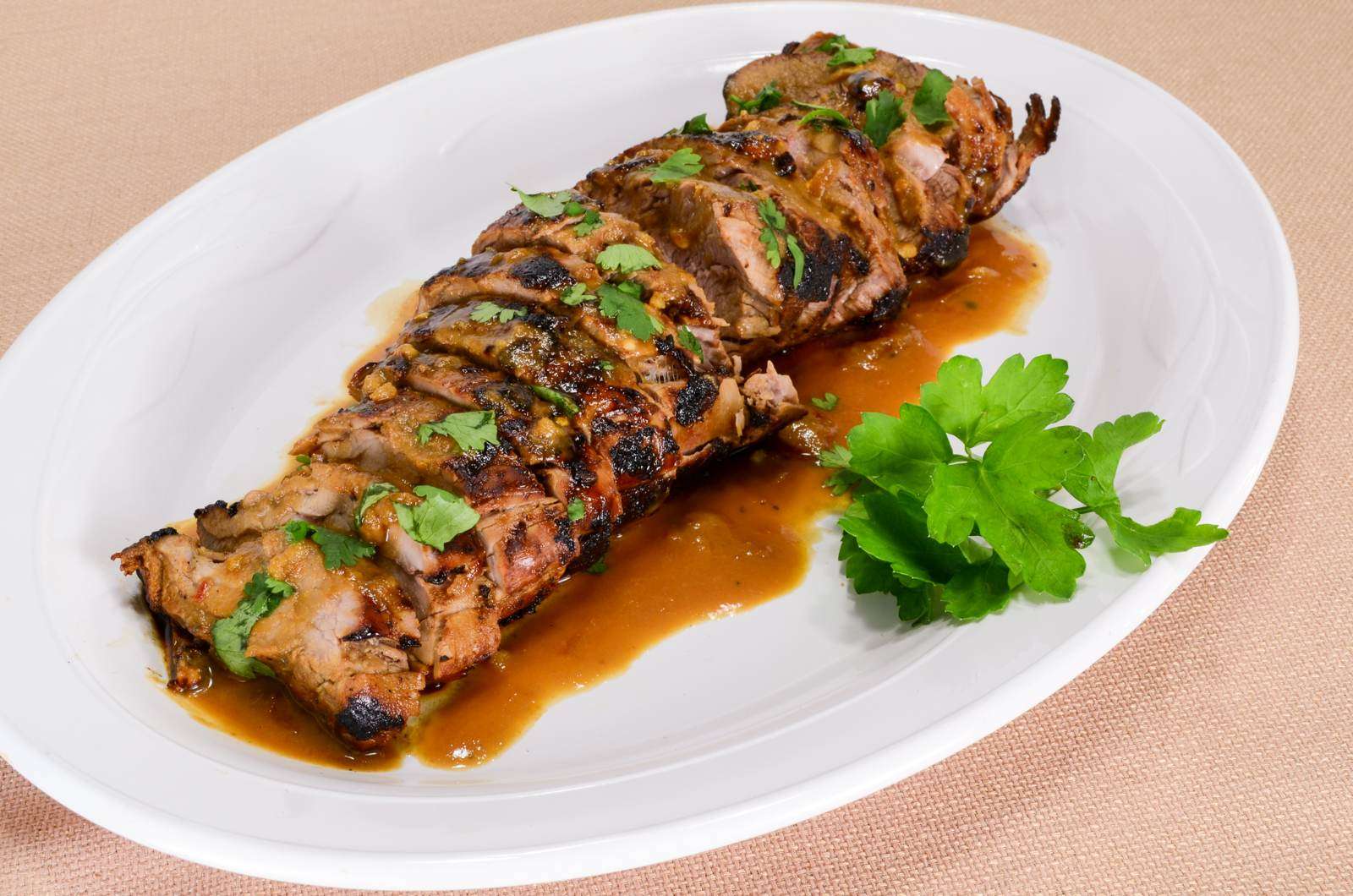 - Pour sauce over the sliced tenderloin or serve on the side, if desired. Sprinkle with chopped cilantro. Enjoy!