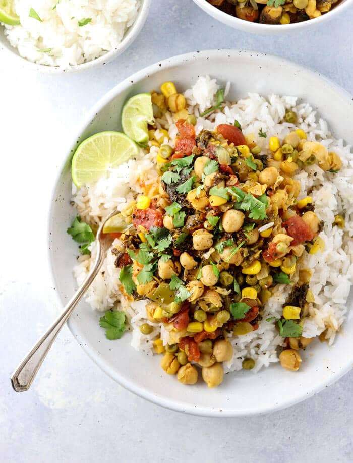 This Vegan Chickpea Curry make a fast vegetarian dinner, especially when cooked in an electric pressure cooker like the Instant Pot.