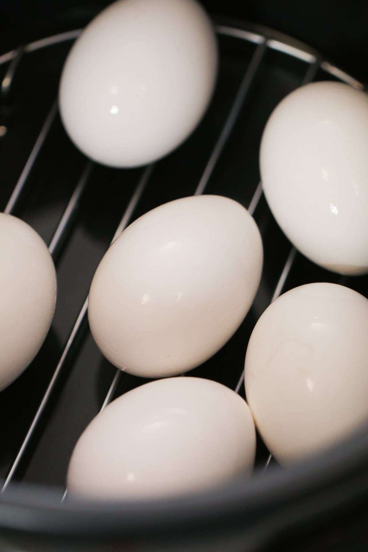- After 4 minutes have passed, wait another 5 minutes before releasing pressure completely. Remove lid and transfer eggs to an ice water bath. Cool until they are easily handled.