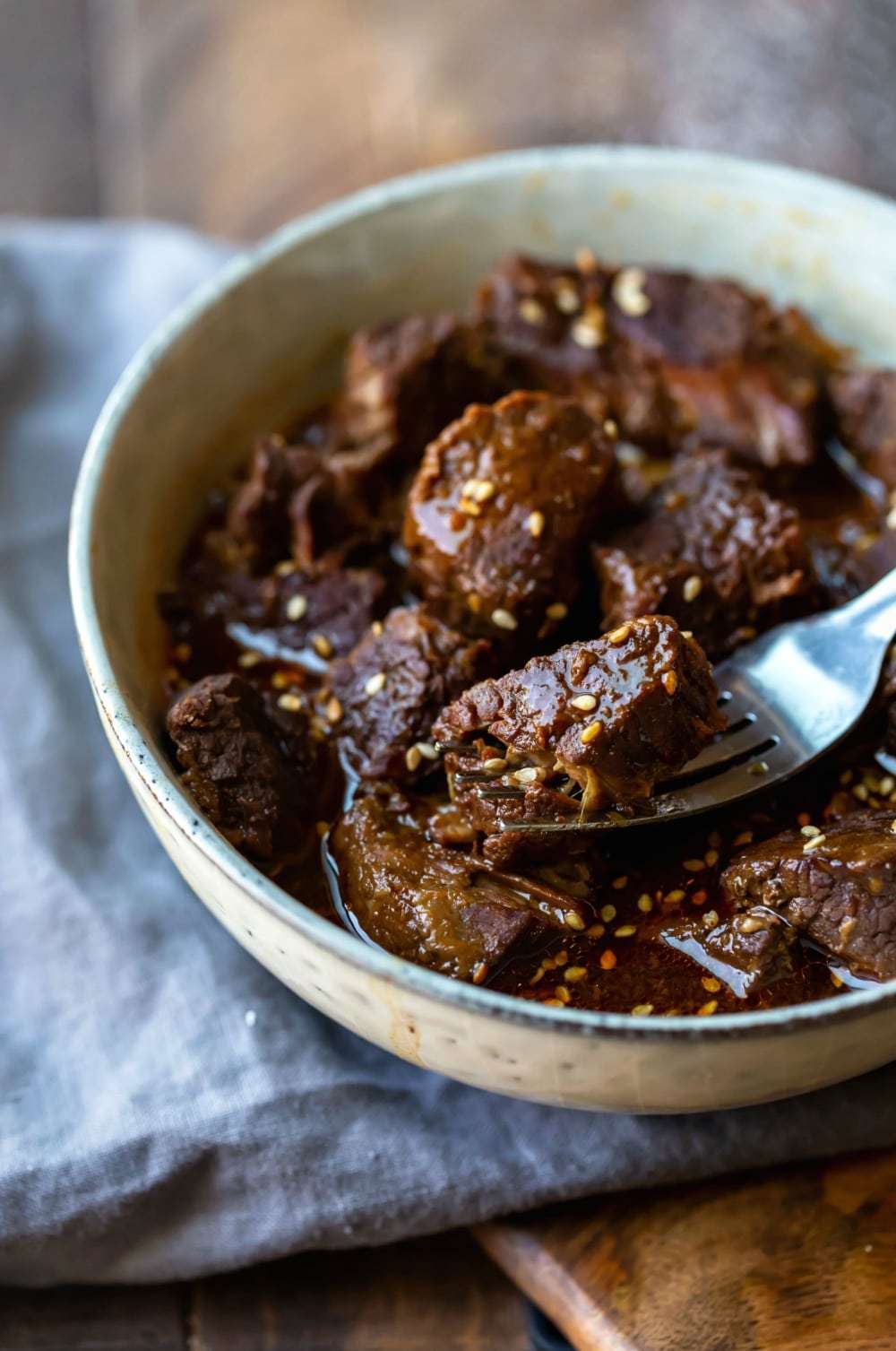 - 3-4 pound boneless beef chuck roast cut into 1-inch cubes