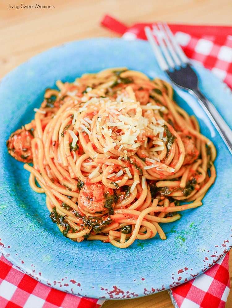 This quick Instant Pot Pasta Recipe is made with sausage and spinach. A delicious one pot family friendly dinner idea ready in 20 minutes or less