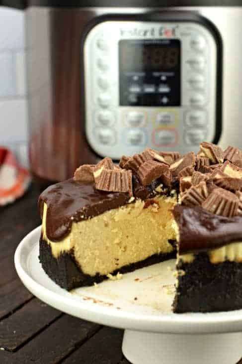 Perfect Instant Pot Peanut Butter Cup Cheesecake Recipe for any time of year. This easy dessert is impressive enough for guests for a holiday or simple enough for a weeknight treat.