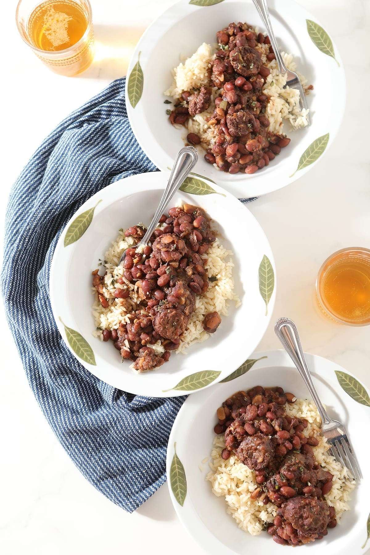 - Don’t forget to cook the rice! We serve this with our favorite white rice, but you can serve it over brown rice if that’s your jam. Time it out so your rice is done around the same time that the beans are.