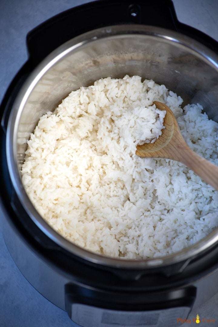 - Open the Instant Pot and fluff the rice gently with a ladle or fork.
