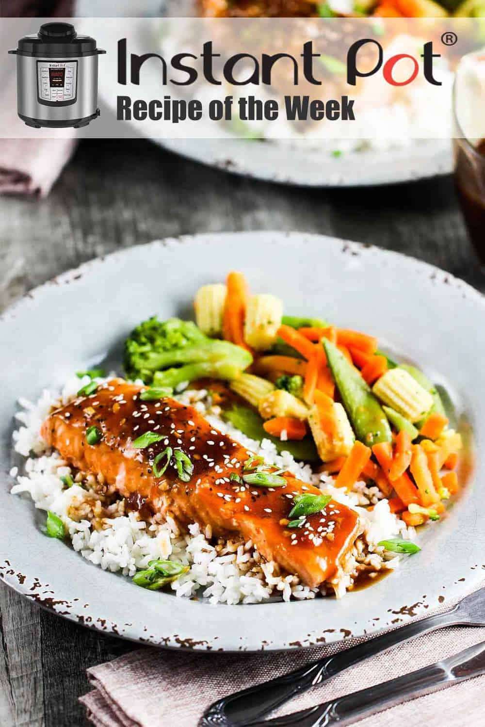 This Instant Pot Teriyaki Salmon recipe is so simple, fast...and delicious! You'll want to steam the salmon in a vessel that will fit inside the IP pot. I love using my 7-inch springform pan lined with foil, but small loaf pans, or even a boat made heavy duty foil will work! Serve with steamed veggies and rice for the perfect weeknight meal! In less than 30 minutes! Get the rice ready first, because the fish comes together so quickly!