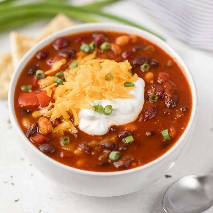 Instant Pot Vegetarian Chili Recipe is packed with amazing flavor and ready in just 10 minutes. This is the perfect meal to get dinner on the table fast!