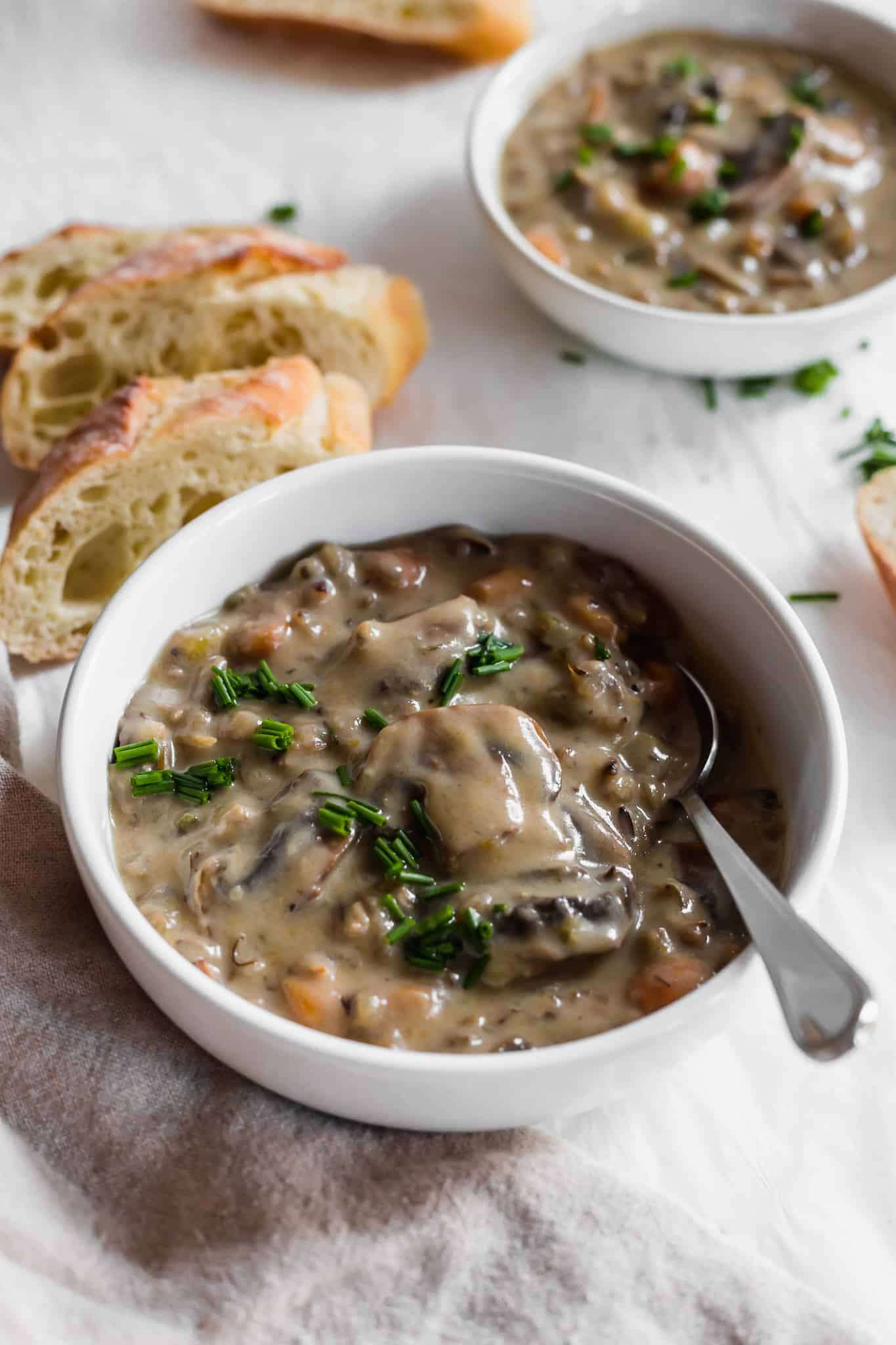 A recipe for delicious and comforting, creamy Instant Pot Wild Rice & Mushroom Soup. Creamy mushrooms, wild rice with vegetables make this a hearty soup.
