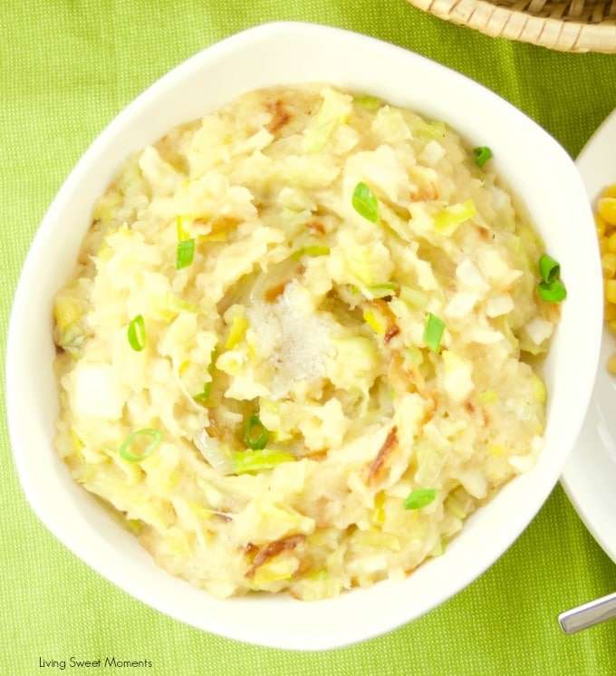 Celebrate St. Patty's day with a hefty bowl of Irish Colcannon Potatoes made with leeks, cabbage and caramelized onions. The perfect side dish to grilled chicken