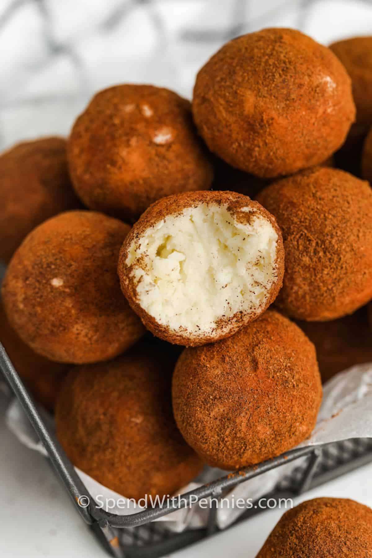 - Place the cinnamon into a small bowl and roll the ball to coat.