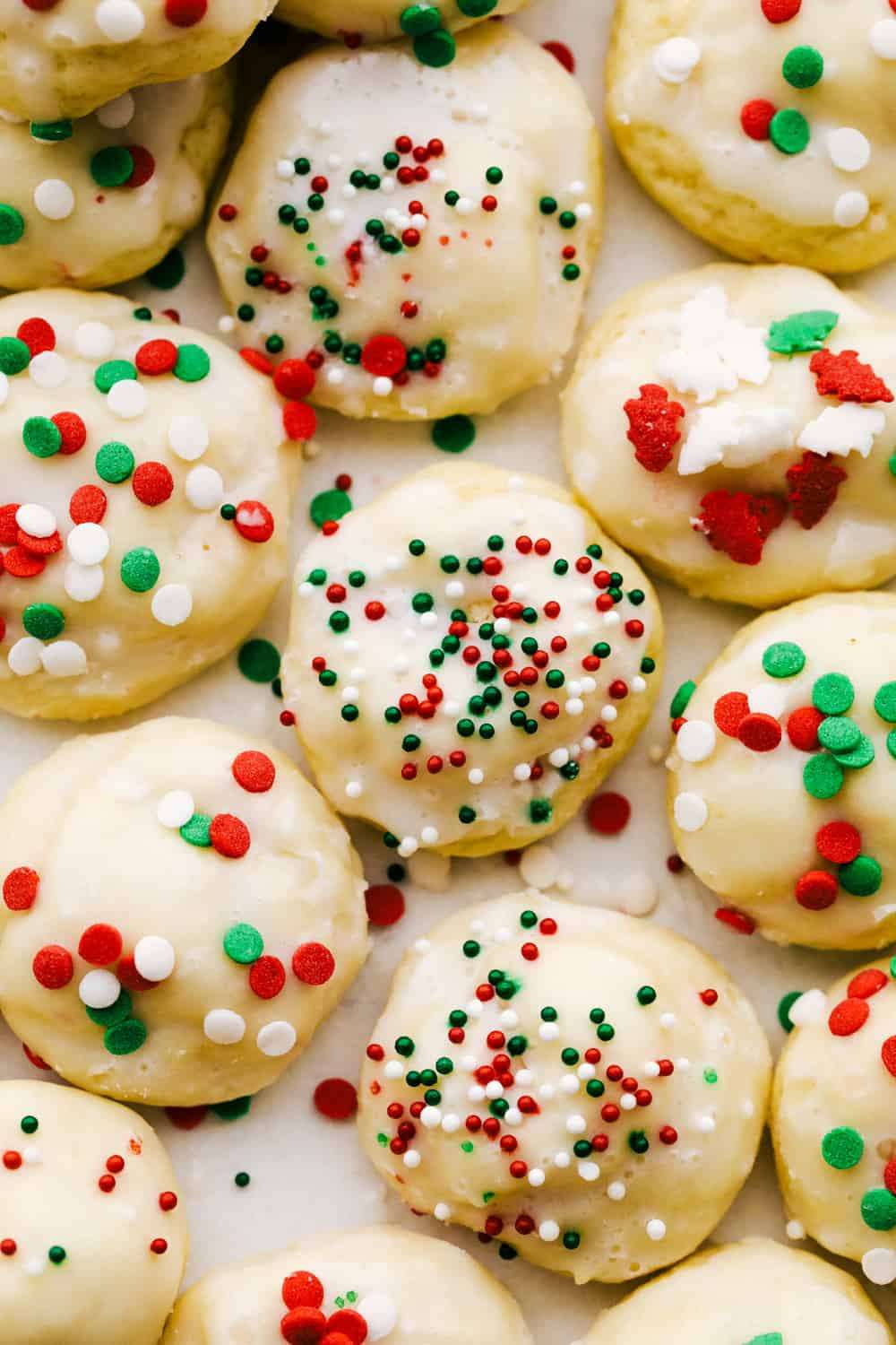 Italian Christmas Cookies are soft, buttery, fluffy and melt in your mouth delicious. Flavored with a hint of vanilla and a sweet glaze, these tasty treats are a perfect holiday treat. Take them to your next cookie exchange, party or just for a fun occasion!