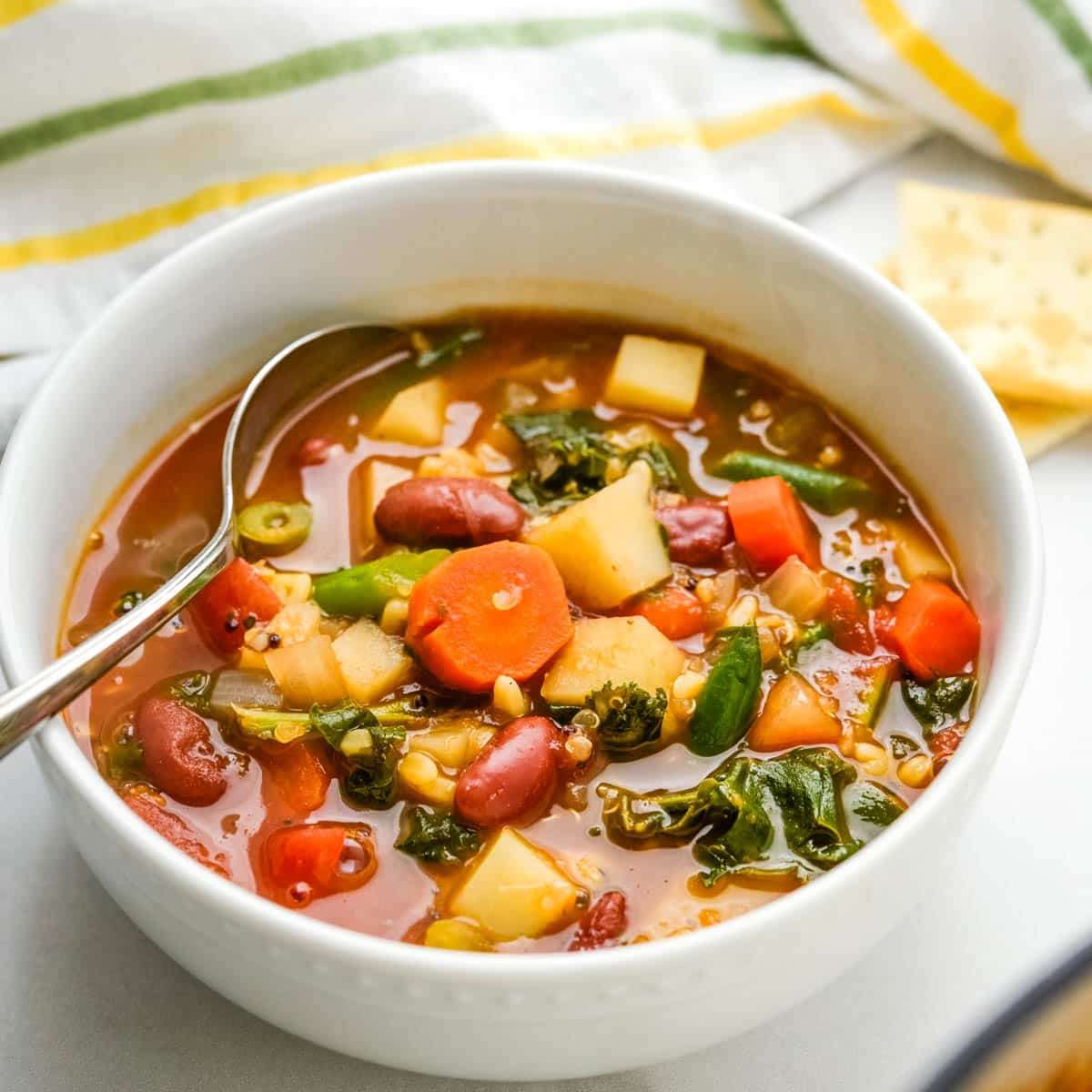This Italian vegetable soup is loaded with fresh and canned vegetables, whole grains and pasta plus a blend of classic spices that make this Italian minestrone soup a winner every time.