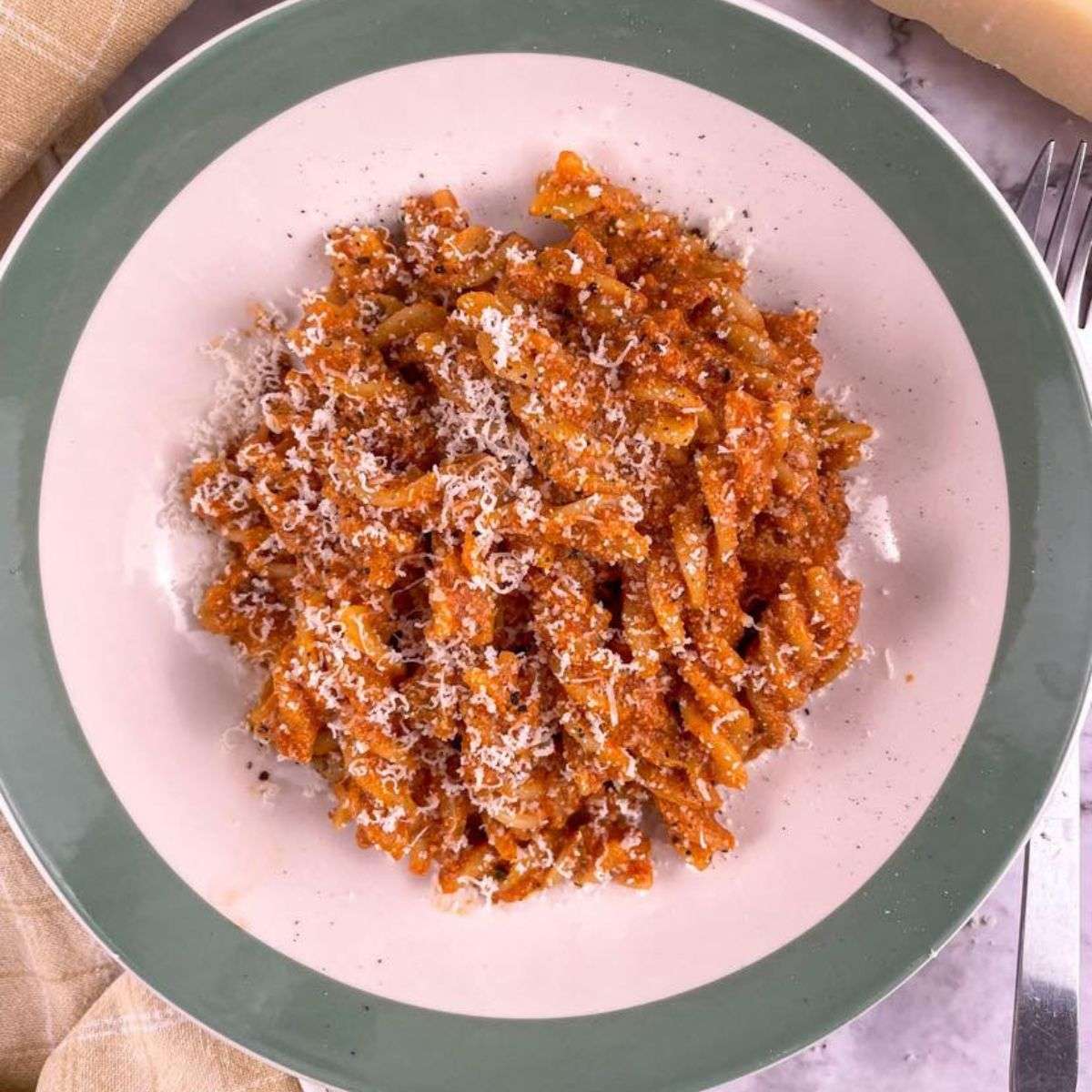 - Serve the pasta topped with grated Parmesan cheese.