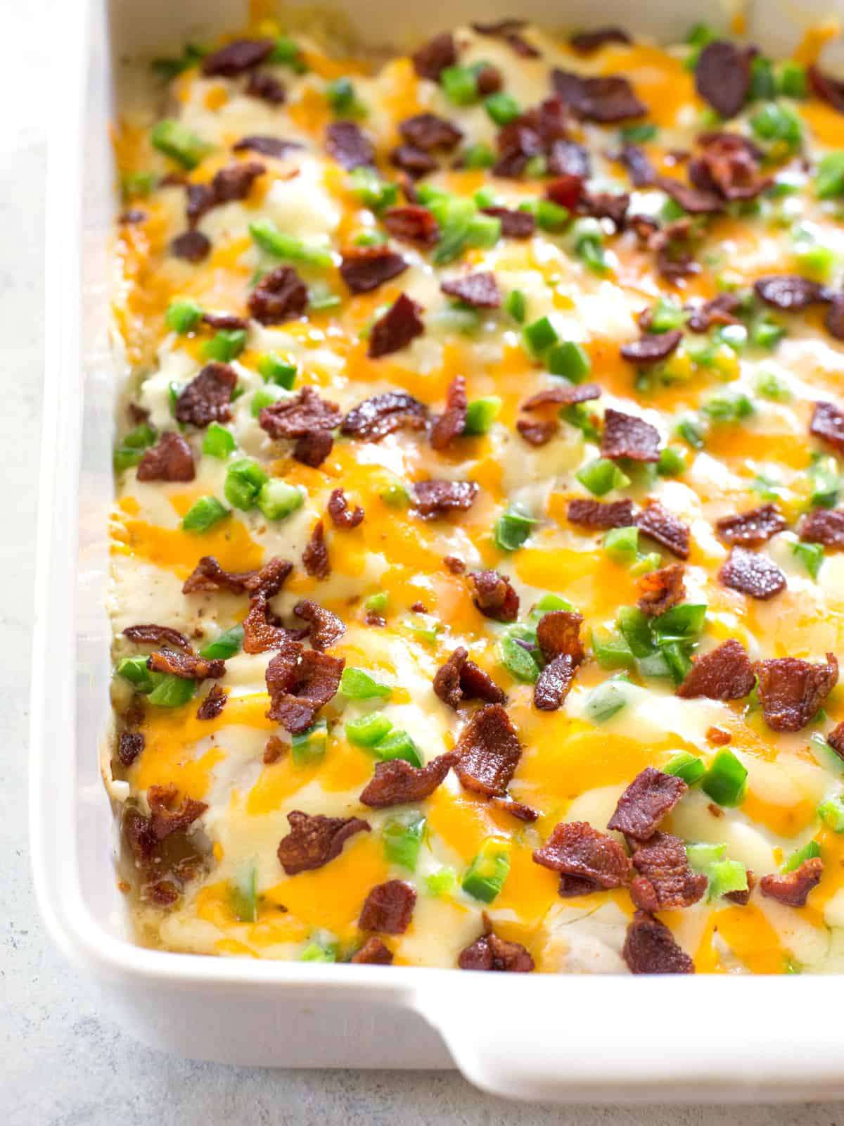 - Preheat oven to 350 degrees and grease a 9x13 baking dish.