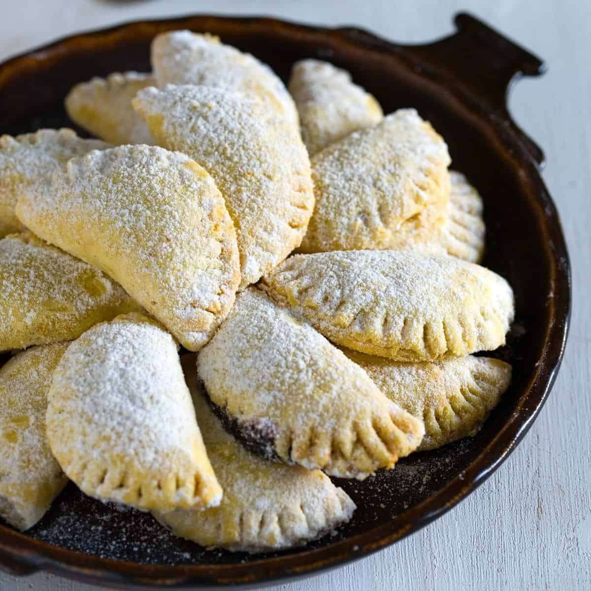 - Place the turnovers on a cookie sheet lined with parchment paper. Preheat the oven at 350 °F and bake for 15 minutes.