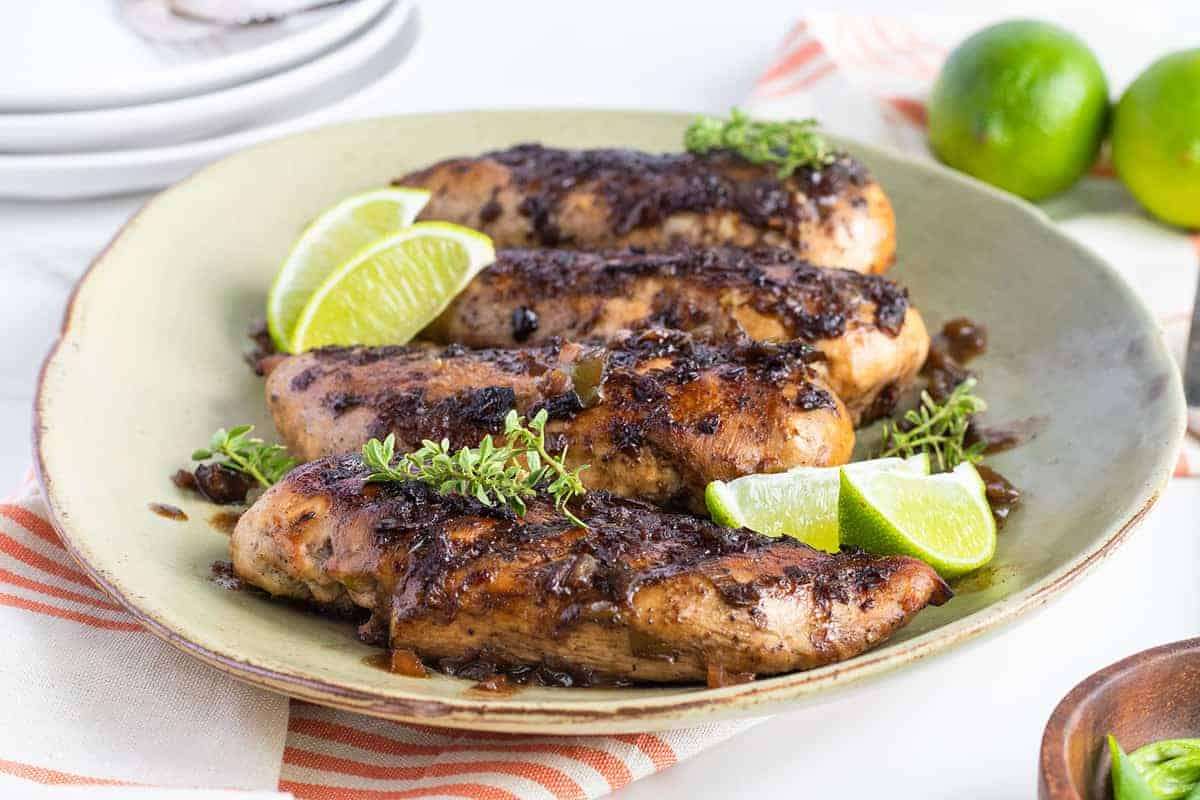 How to make jerk chicken! Chicken breasts are marinated in a spicy pepper-filled marinade then grilled to tender, juicy perfection!