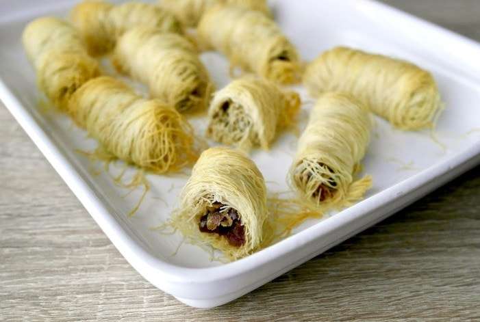 - Brush each section with olive oil and place about a tablespoon of the filling on one side of the phyllo strip, roll as tightly as you can and tuck in any strays. Place on a pan. Repeat this for all your rolls. Brush all of them with a bit of olive oil and sprinkle with water. * It is preferable that the pies fit snugly in your pan rather than far apart.