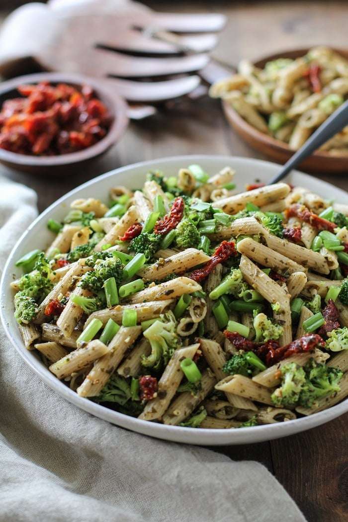 Kale Pesto Pasta Salad with Sun-Dried Tomatoes and Broccoli