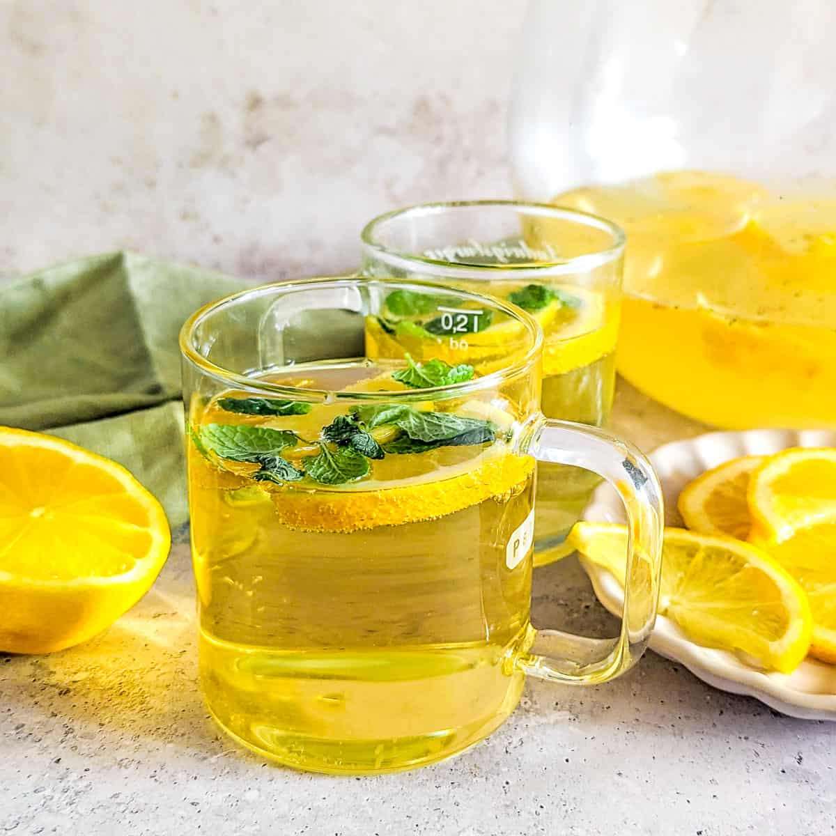 - Chill in the fridge for at least 30 minutes, pour into glasses, garnish with lemon slices and mint leaves (optional), and serve.