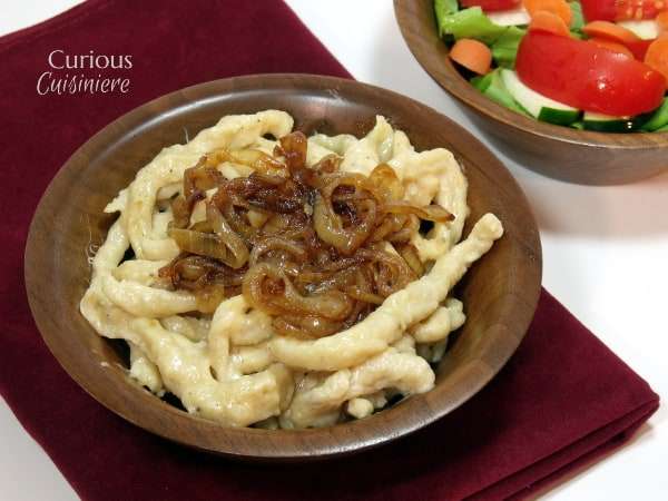 Swiss cheese creates a creamy sauce for this Kasespatzle recipe. Serve it topped with sweet, caramelized onions for a real treat.