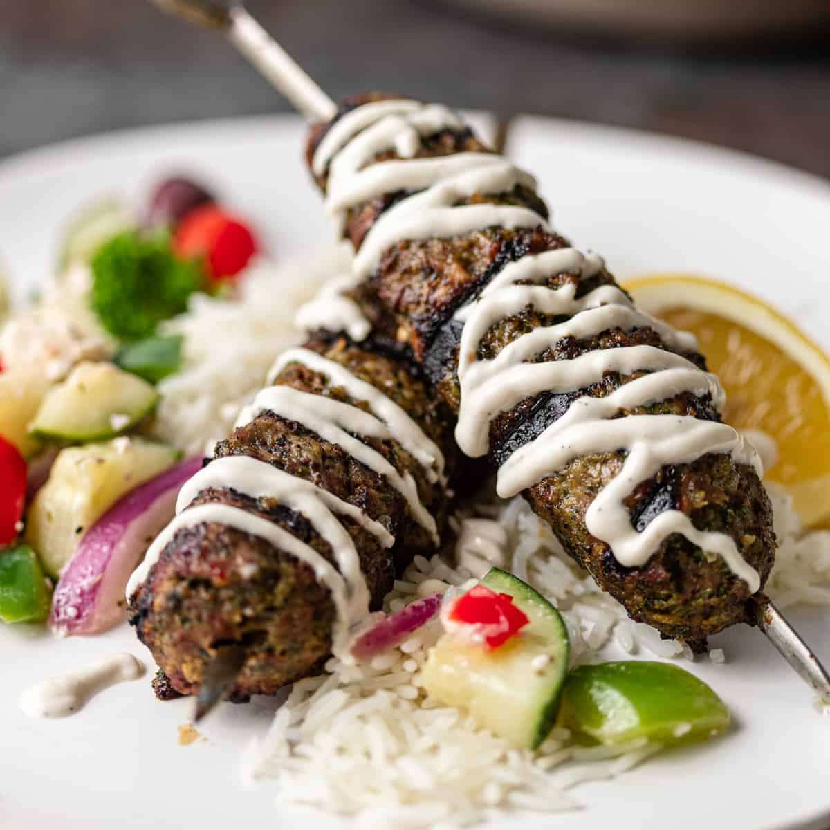 This classic grilled Moroccan kefta kabob combines ground beef, shredded onion and fresh herbs and spices served with creamy yogurt sauce. Make this kefta recipe for a quick, flavorful grilled meal.