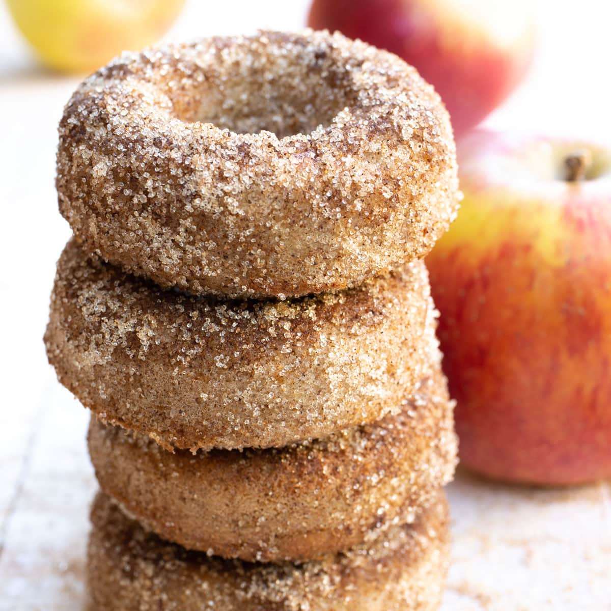 These small but perfectly formed gluten free keto donuts are a real treat! Made with real apple and apple cider vinegar, and coated in a cinnamon sweetener mix, these keto apple cider donuts are a hit with the whole family.