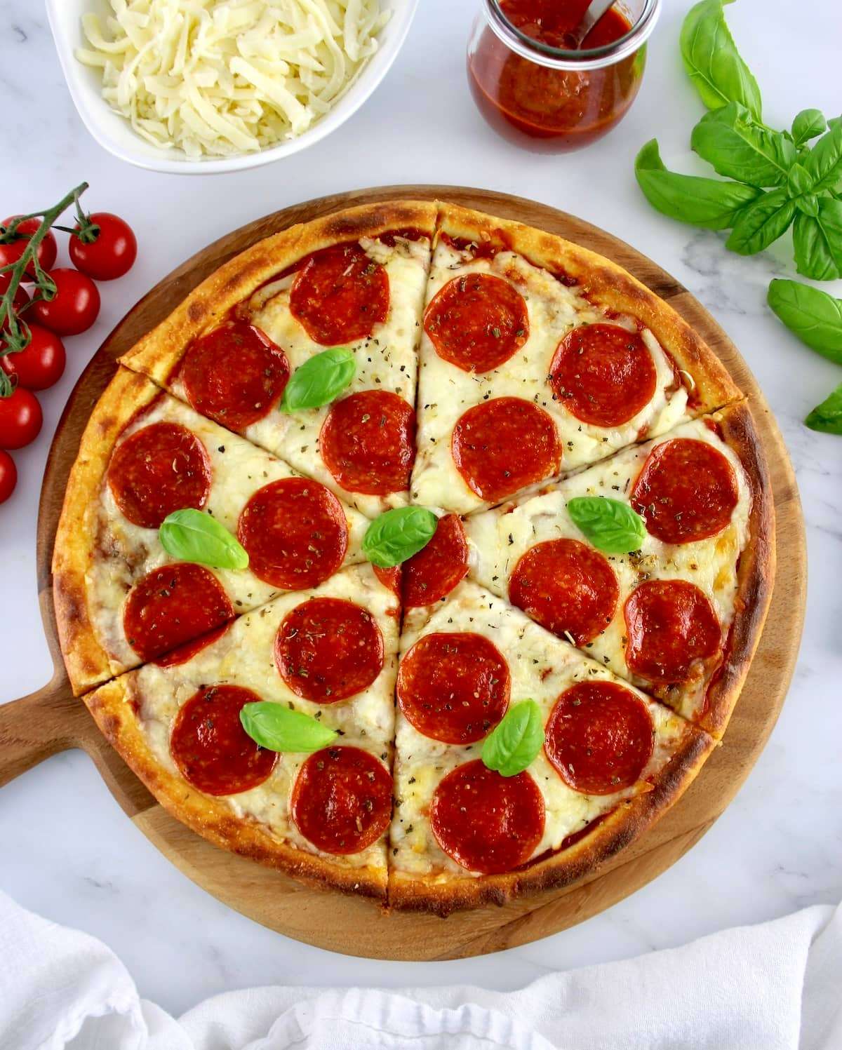 This Keto Fathead Pepperoni Pizza is the ultimate low-carb pizza with a perfectly chewy crust and melty cheese.