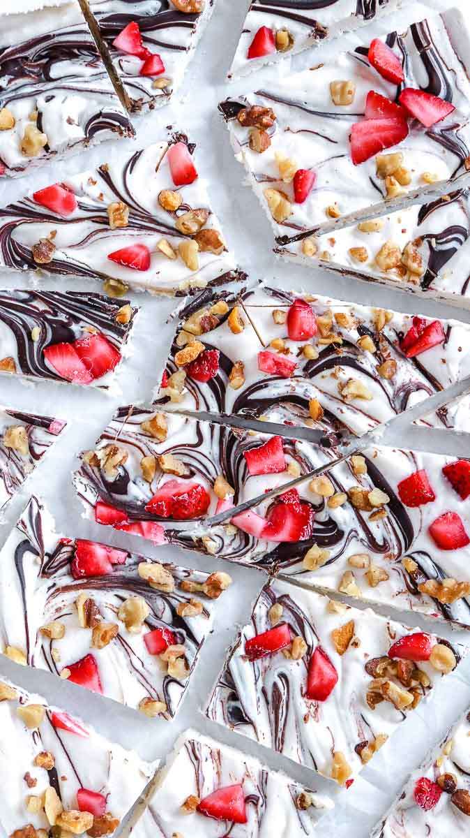 If you are following a low carb lifestyle, this is the perfect sweet snack for you! This keto frozen yogurt bark is no bake, takes 10 minutes to make and contains 7g of carbs per serving.