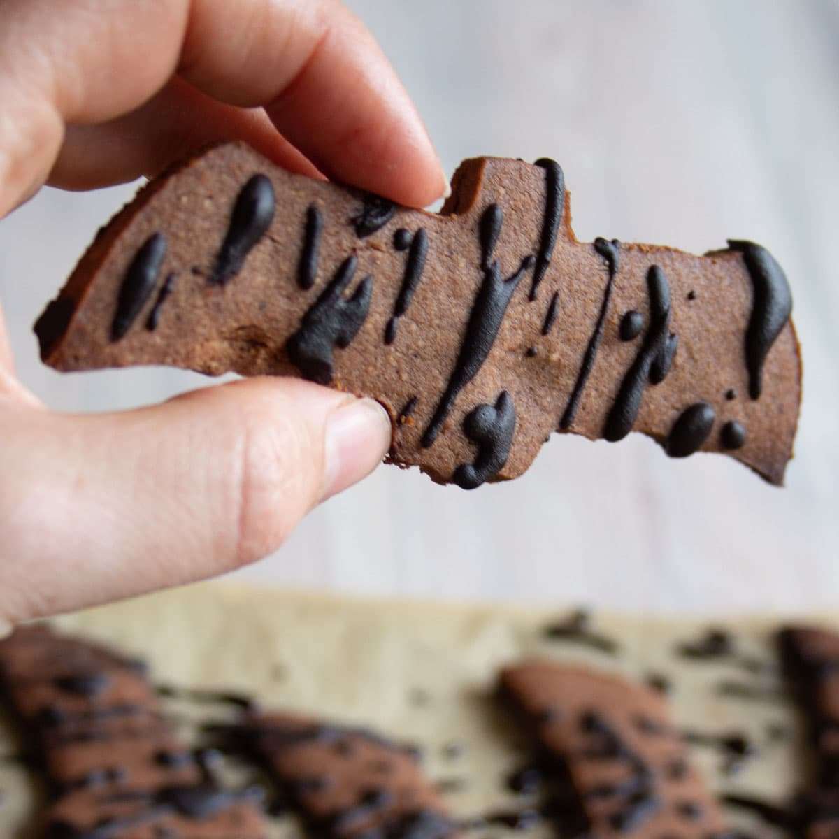 Tasty bats straight out of hell: These keto Halloween cookies are sugar free, grain free, low carb and drizzled with an indulgent chocolate glaze.
