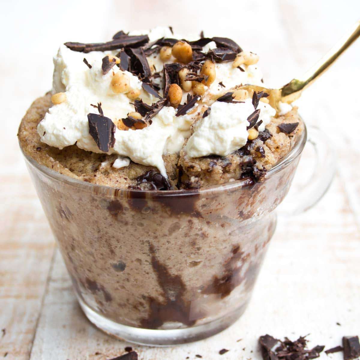 Sometimes only a moist, fluffy Keto peanut butter mug cake will do! This sugar free, low carb microwave dessert recipe takes 4 minutes from start to finish. Dairy-free option!