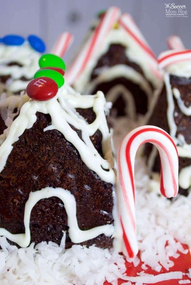 - Once we popped out cakes out of their molds, we decorated them with white chocolate, candy, and coconut "snow." This part is left up to your imagination!