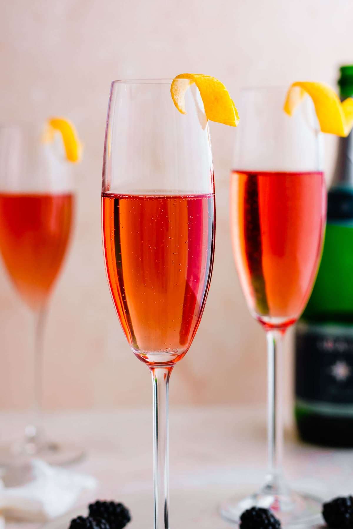 Kir Royale is an easy French champagne drink made with black currant crème de cassis liqueur. Perfect for brunch and celebrations!