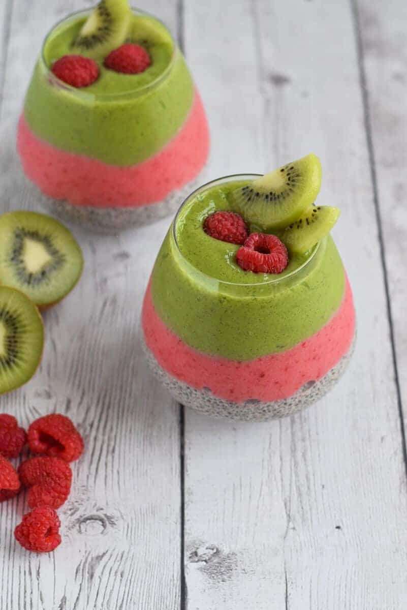 Kiwi and Raspberry Chia Pudding is naturally sweet and creamy. Make it ahead and keep it in the fridge for a quick and healthy snack anytime. {vegan, gluten-free, paleo, whole30, dairy free}