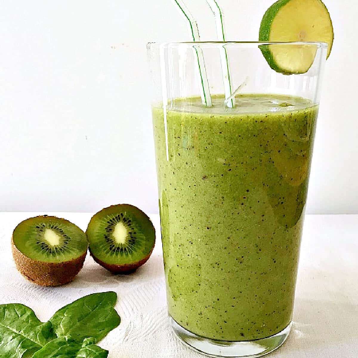 Kiwi Spinach Smoothie with a hint of lime, a delicious drink loaded with all the nature's goodness. It's got all the vitamins and minerals you can think of, plus it's diary free, making it suitable for vegans too. This is really a magic drink! A great green smoothie is all we need to fight the cold and flu this winter. Vegan and Vegetarian friendly too.
