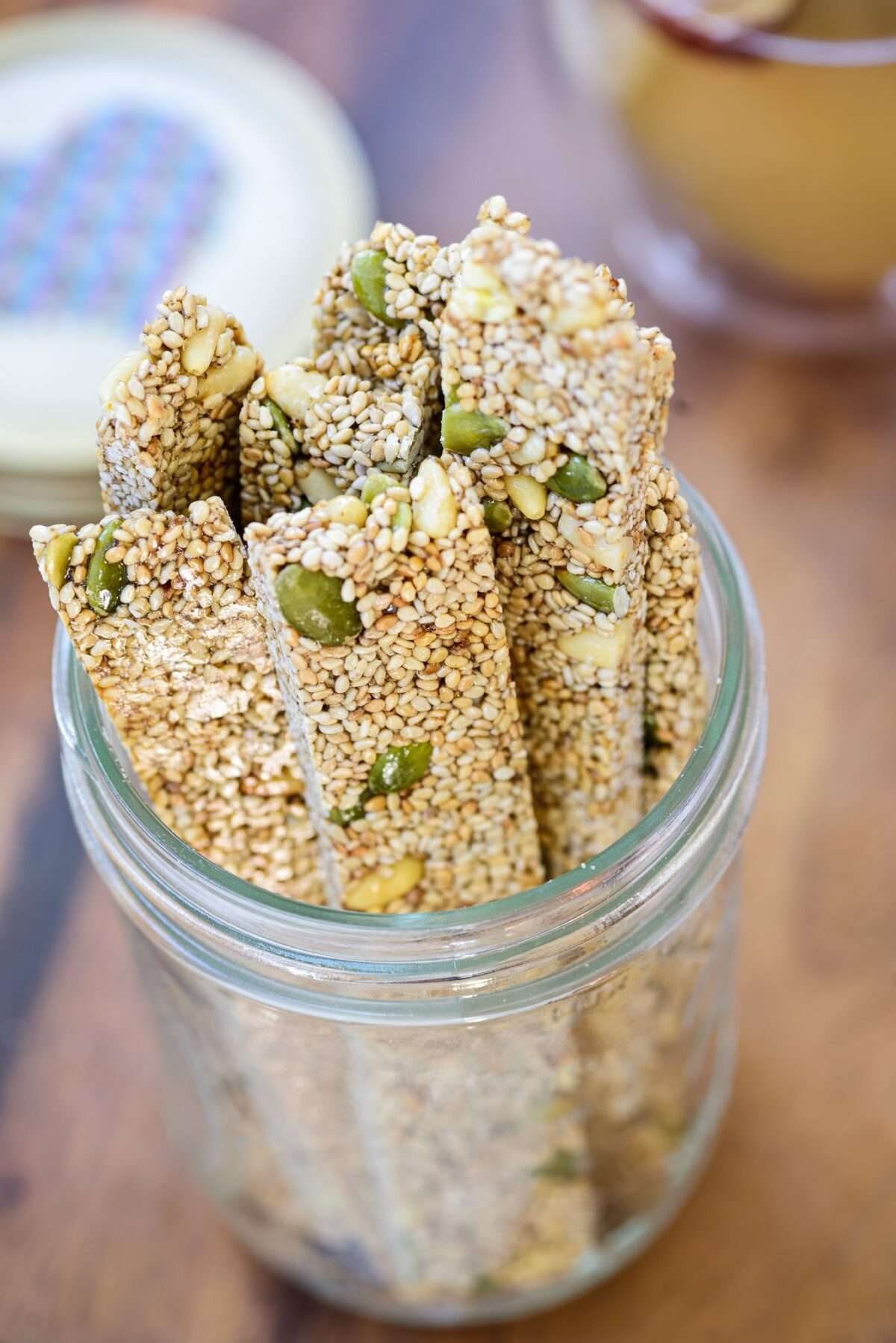 This nutty, crunchy and healthy sesame crunch is so easy to make with sesame seeds, honey, and sugar! You can also add your favorite nuts and/or seeds.