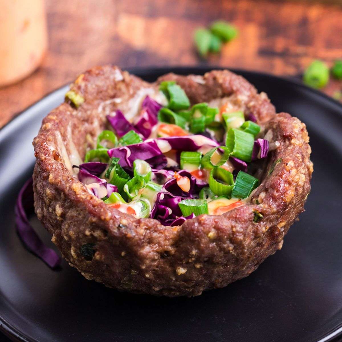 - Fill each beef bowl with ¼ cup shredded red cabbage, green onions, and chili mayonnaise to taste. Enjoy!